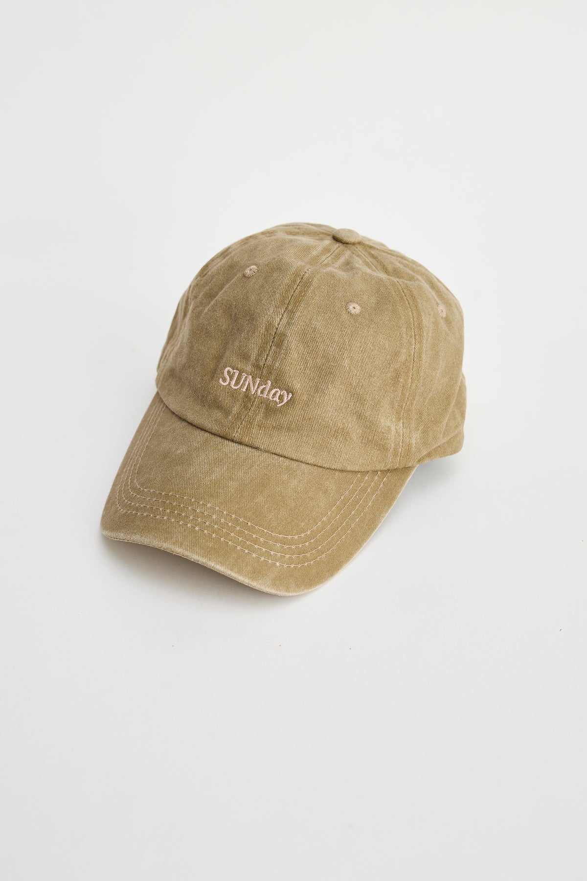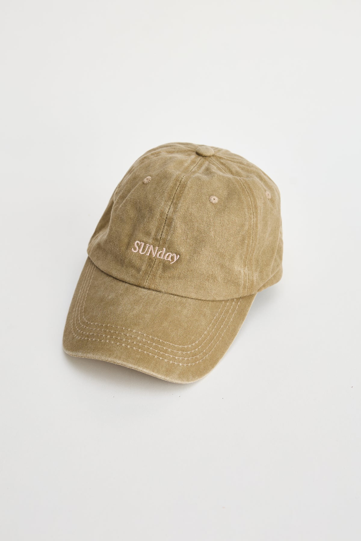 Soft washed cotton Embroidered SUNday front logo Relaxed unstructured crown Adjustable back strap Curved brim