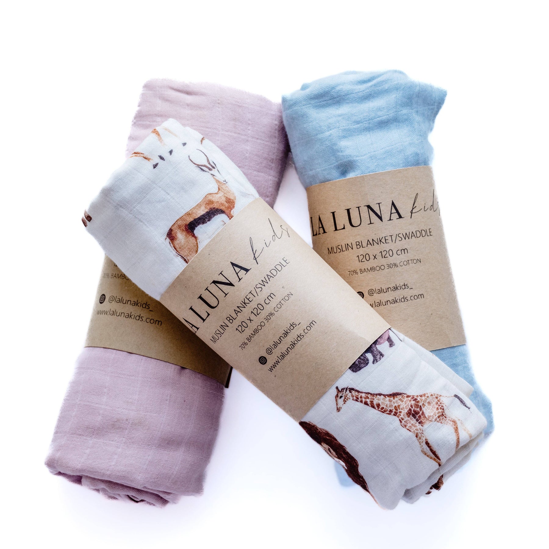 Light weight, breathable and super soft, gentle on your baby’s skin. Perfect for swaddling your newborn or throwing over your pram. Machine washable. 70% Bamboo 30% Cotton, 120cm x 120cm