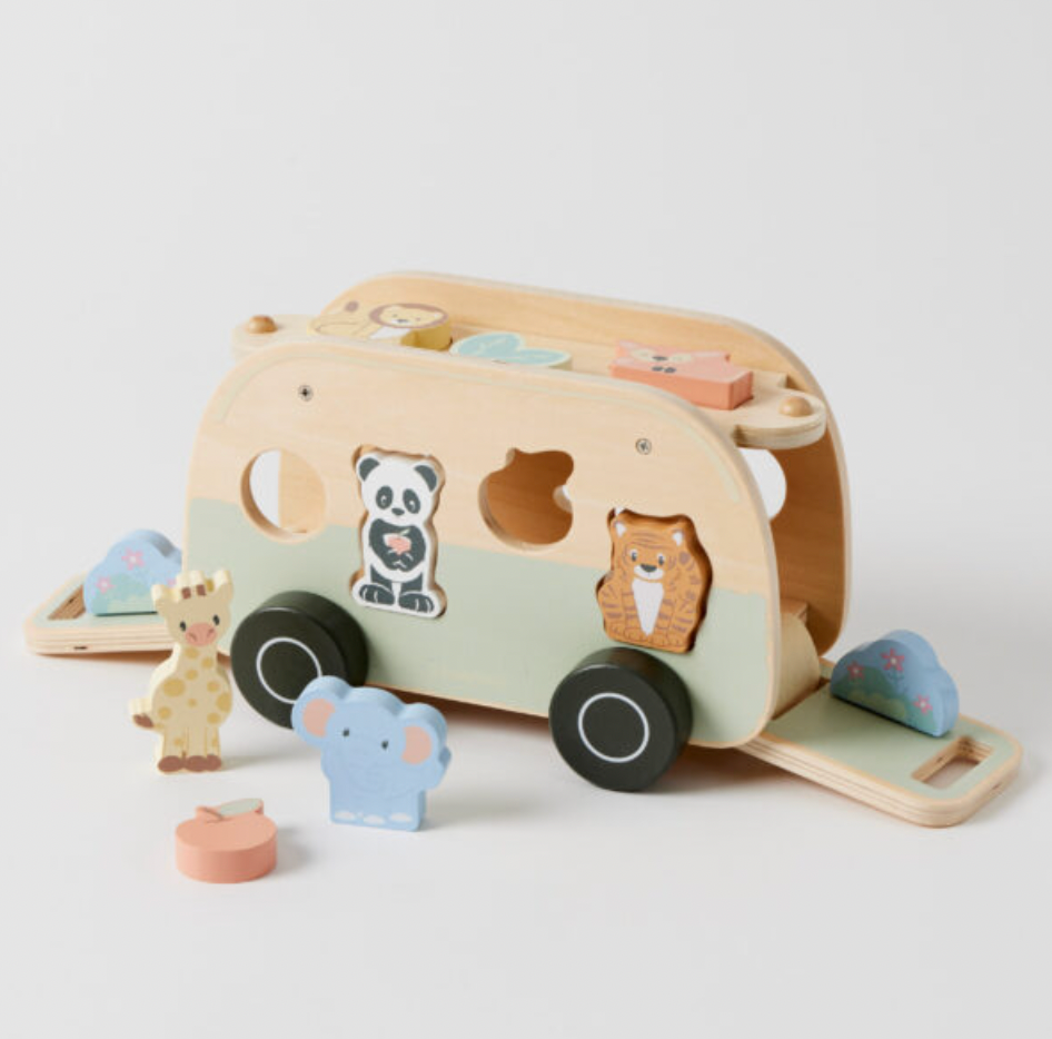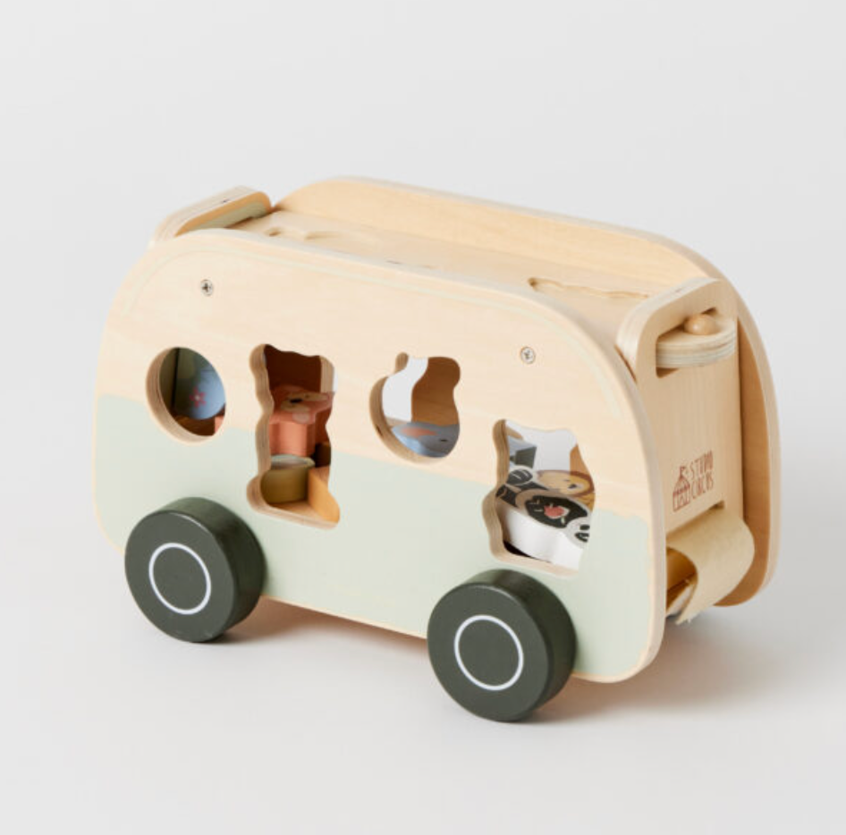 Ignite a child’s imagination and refine their fine motor skills with our enchanting Animal Camper Van Sorter. Crafted from durable wood, this playful toy challenges little ones to match colourful animal and nature-themed shapes to their corresponding slots, combining the thrill of a vehicle with the educational benefits of a shape sorter. Once all pieces are snugly in place, close the doors and it’s off for an adventure on the open road, making learning an exciting journey every time. Perfect for toddlers eager to explore and learn in the most delightful way.