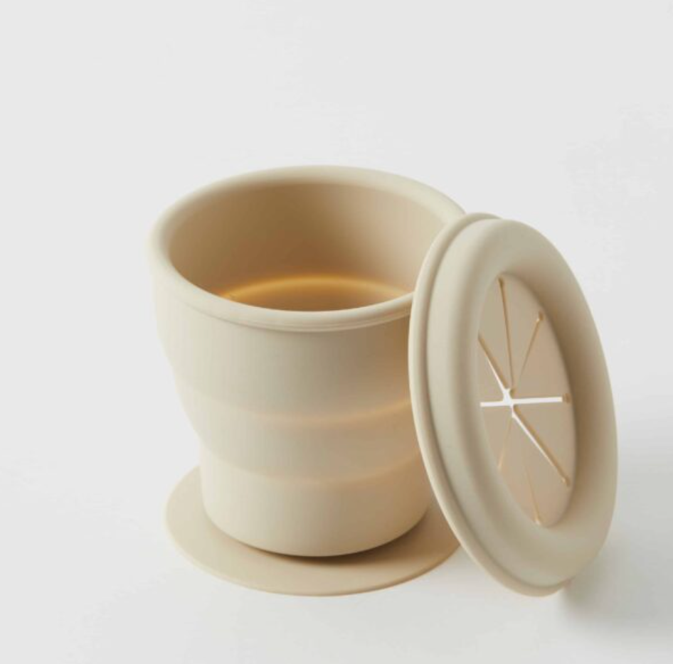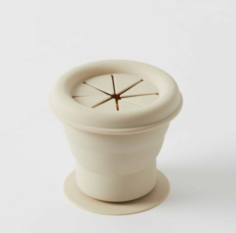 With its inbuilt suction base, the Henny Silicone Collapsible Snack Cup can be easily secured to almost any solid surface. This cup comes with a special lid that prevents spills and has a collapsible feature that makes it perfect for on-the-go and easy storage.