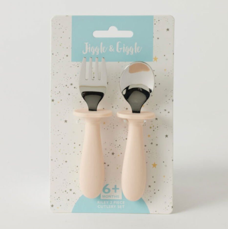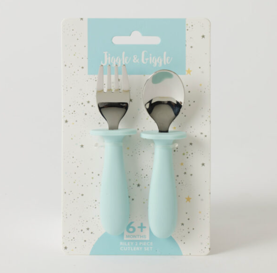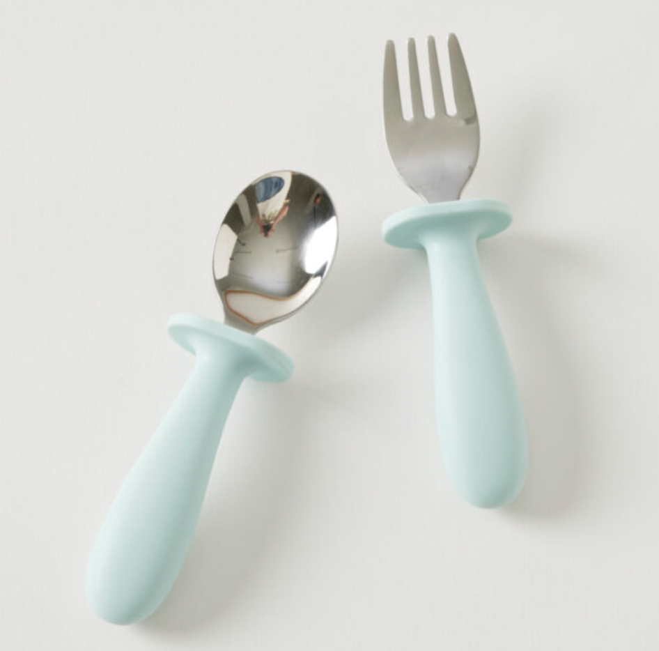 For big kids only! This stainless steel and silicone cutlery set is perfect for little hands. The easy-grip silicone and ergonomic handles make them simple to use and help mealtime feel all grown up. Comes with one dishwasher-safe spoon and fork.