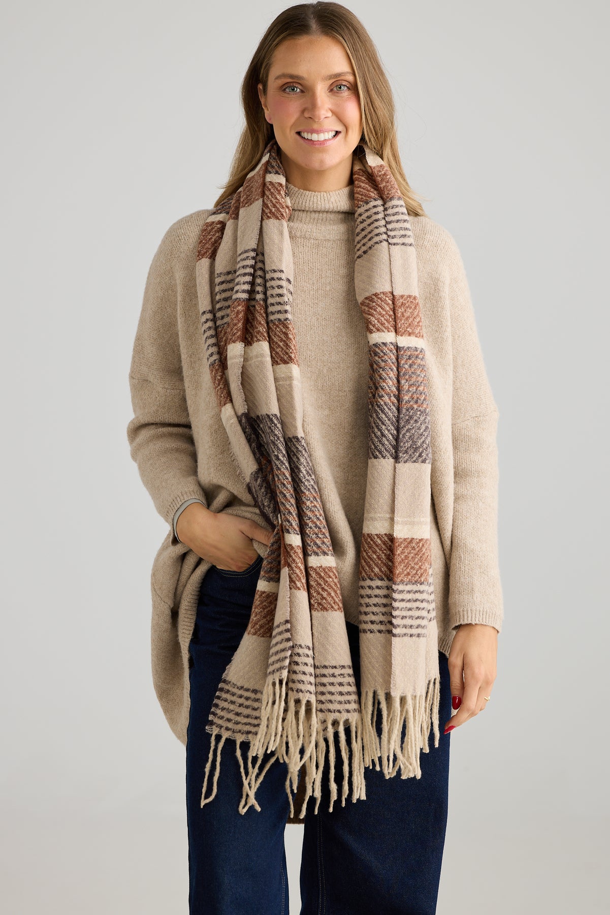 Mid weight scarf with a soft brushed feel and an easy everyday drape Warm and cosy scarf offering comfortable coverage without feeling too heavy Classic mid weight style designed for layering and effortless wear