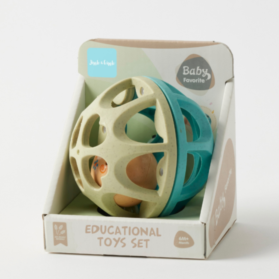 Delight babies with sensory-rich fun with the Eco-Friendly Ball Rattle by Jiggle & Giggle. Easy to grip and fun to shake, this lightweight rattle promotes sensory development and coordination with its gentle sound and eco-safe design.