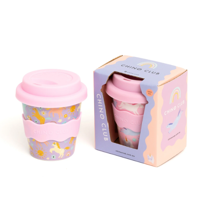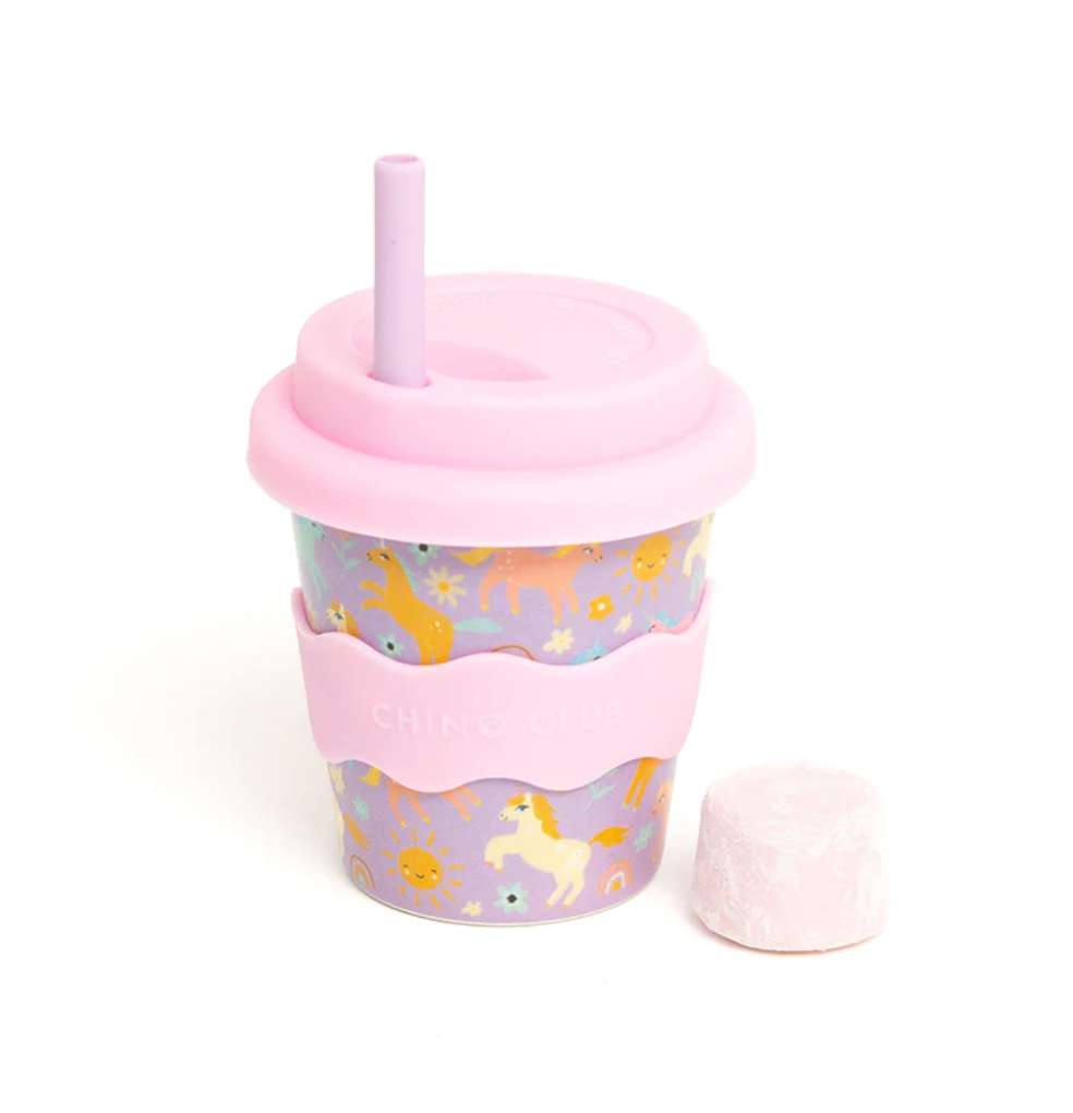 Add a touch of magic to their day! The 'Purple Unicorn' Babychino Cup (4oz) is perfect for little dreamers. Fun, reusable, and full of enchantment.