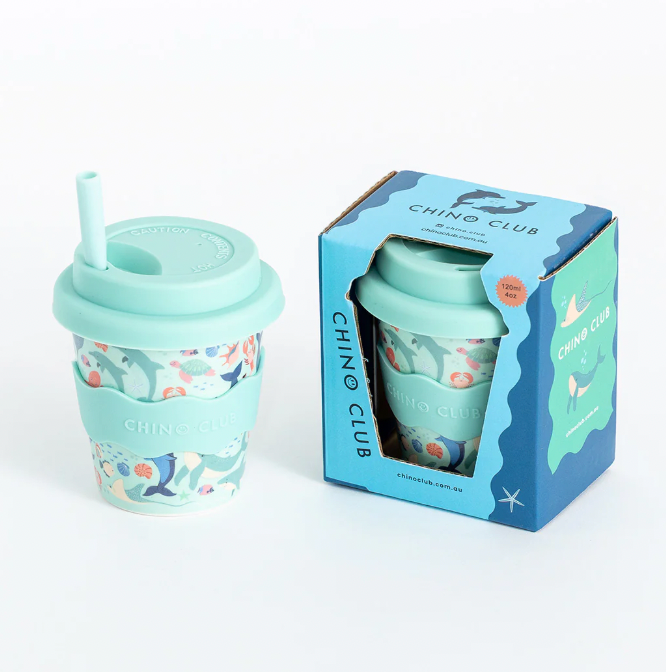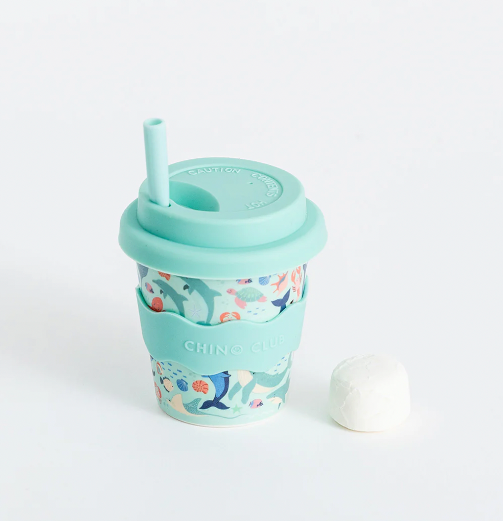 This cup is filled with colourful sea creature designs on a fresh aqua background – perfect for ocean-loving little ones.