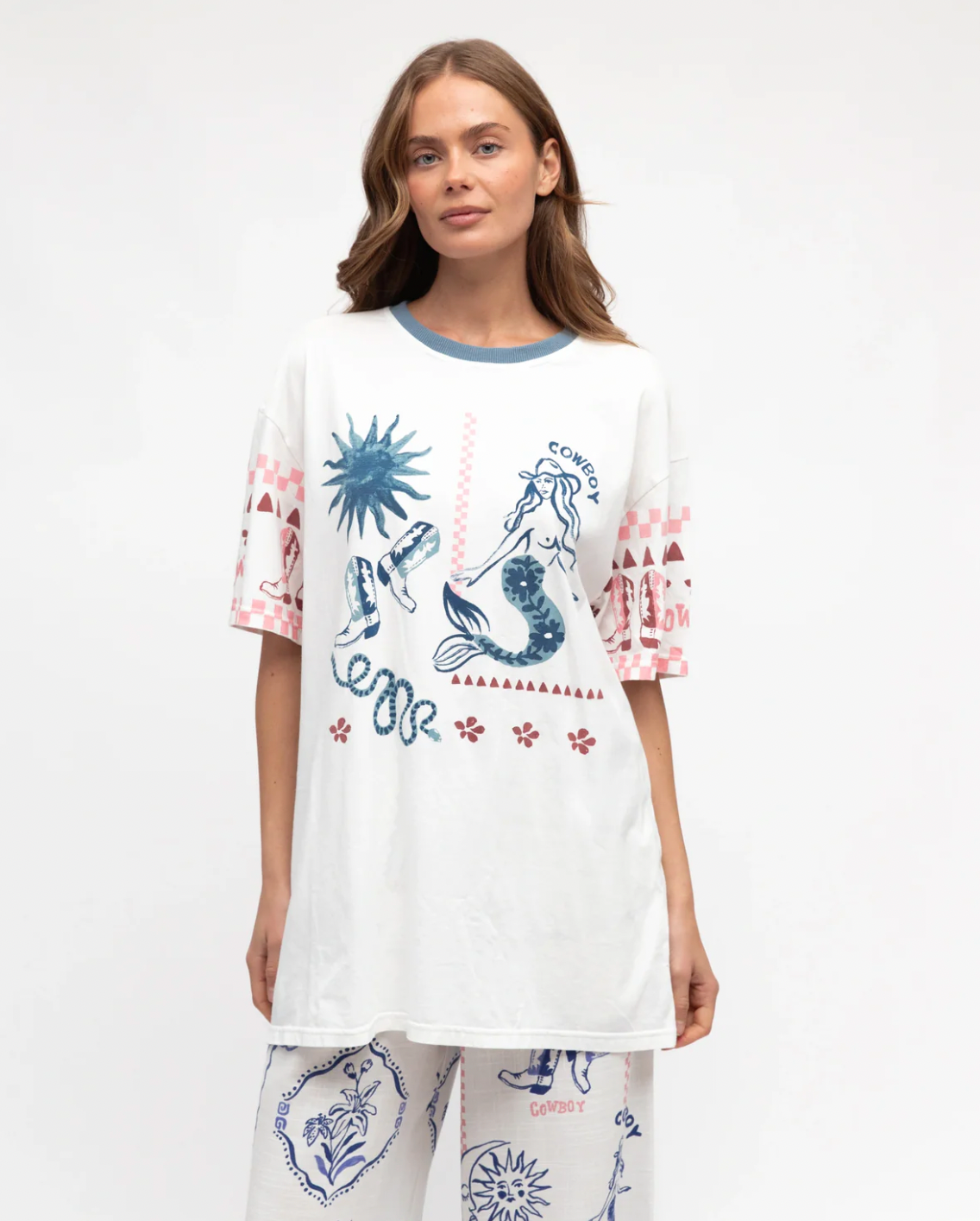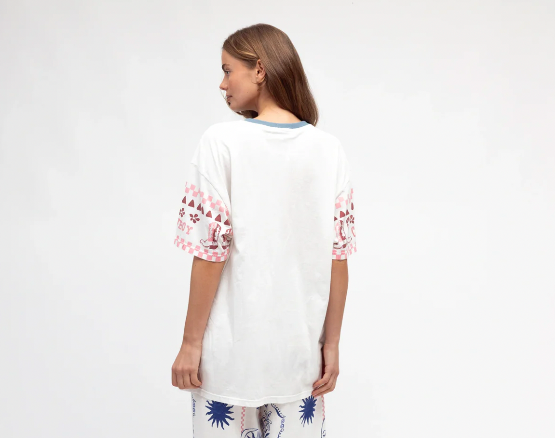 100% Cotton∙ Exclusive print∙ Crew neck∙ Short sleeves∙ Hip length∙ Relaxed fit∙ Our model is wearing size 8