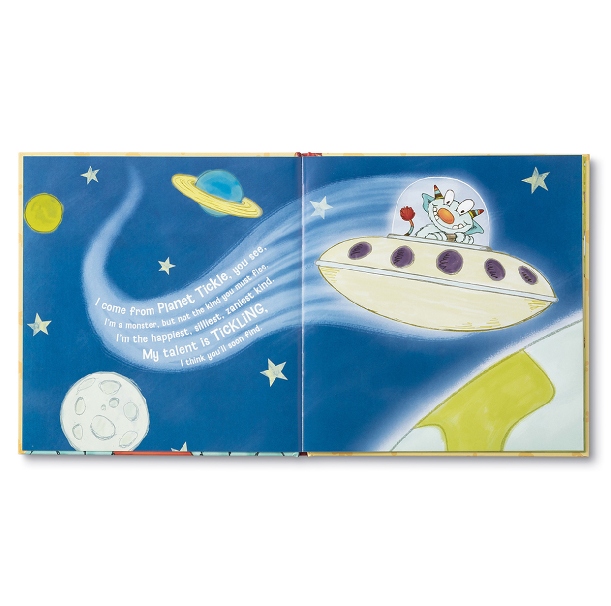 A loveable monster has just flown in from Planet Tickle on a mission is to tickle any child who happens to be following along with the Tickle Monster book.